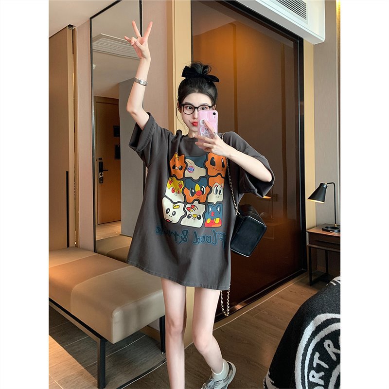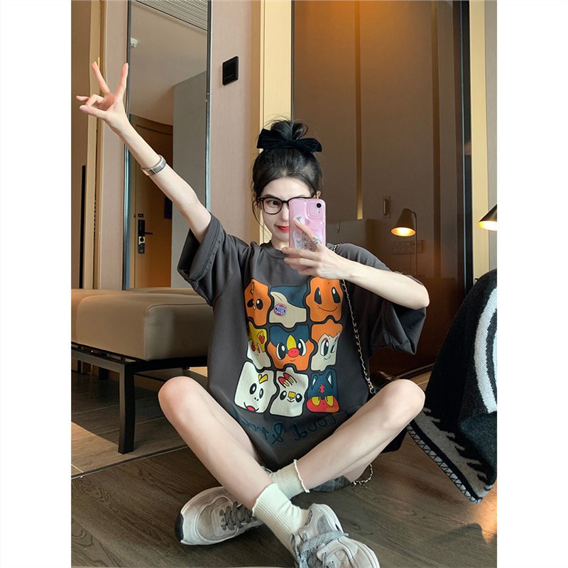 重磅纯棉兔子印花短袖t恤女夏季新款宽松美式复古半袖上衣