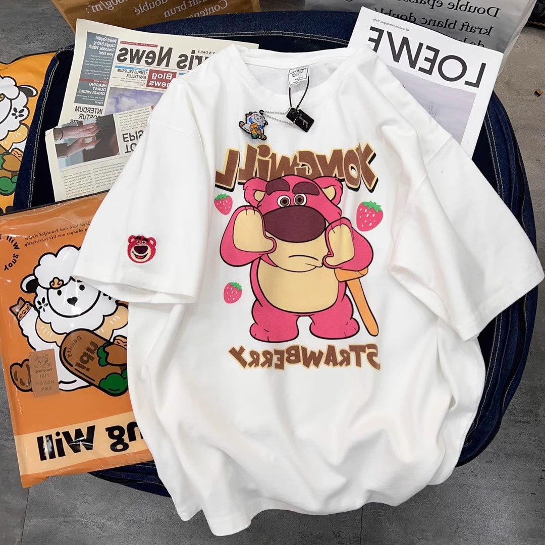 纯棉小熊短袖t恤女春夏季新款宽松显瘦大码半袖oversize上衣