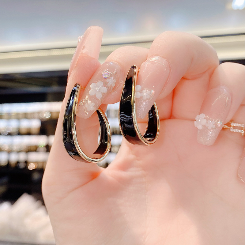 东大门时尚个性气质复古滴油耳圈女s925银针网红轻奢设计感耳环女