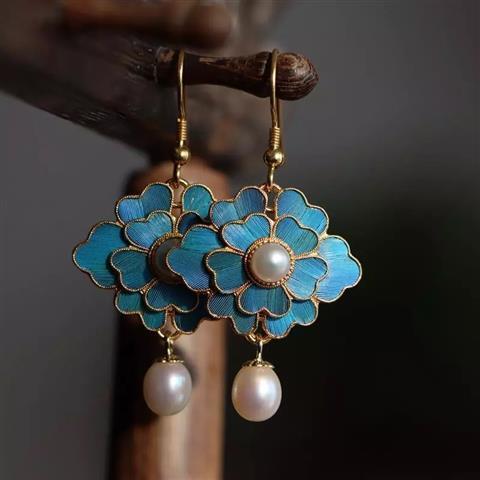 景泰蓝仿点翠镀金色耳环鎏金故宫经典新款中式简约中国风古风耳坠