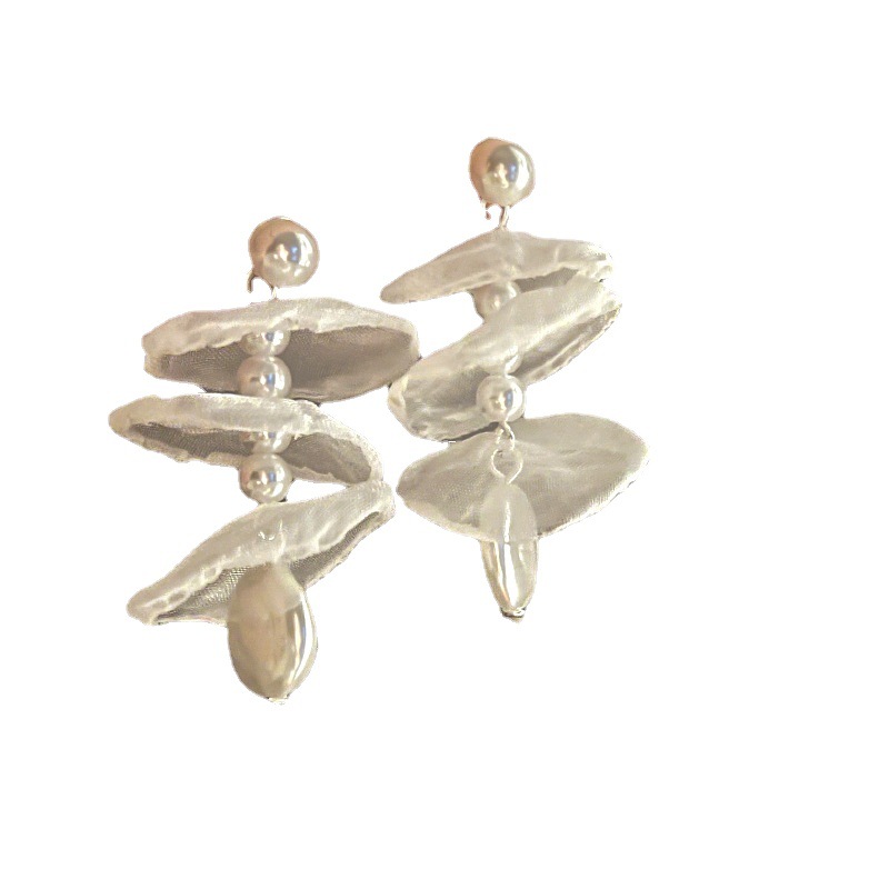 蕾丝氛围感法式雪纺珍珠耳环高级感小众复古仙气质ins度假风