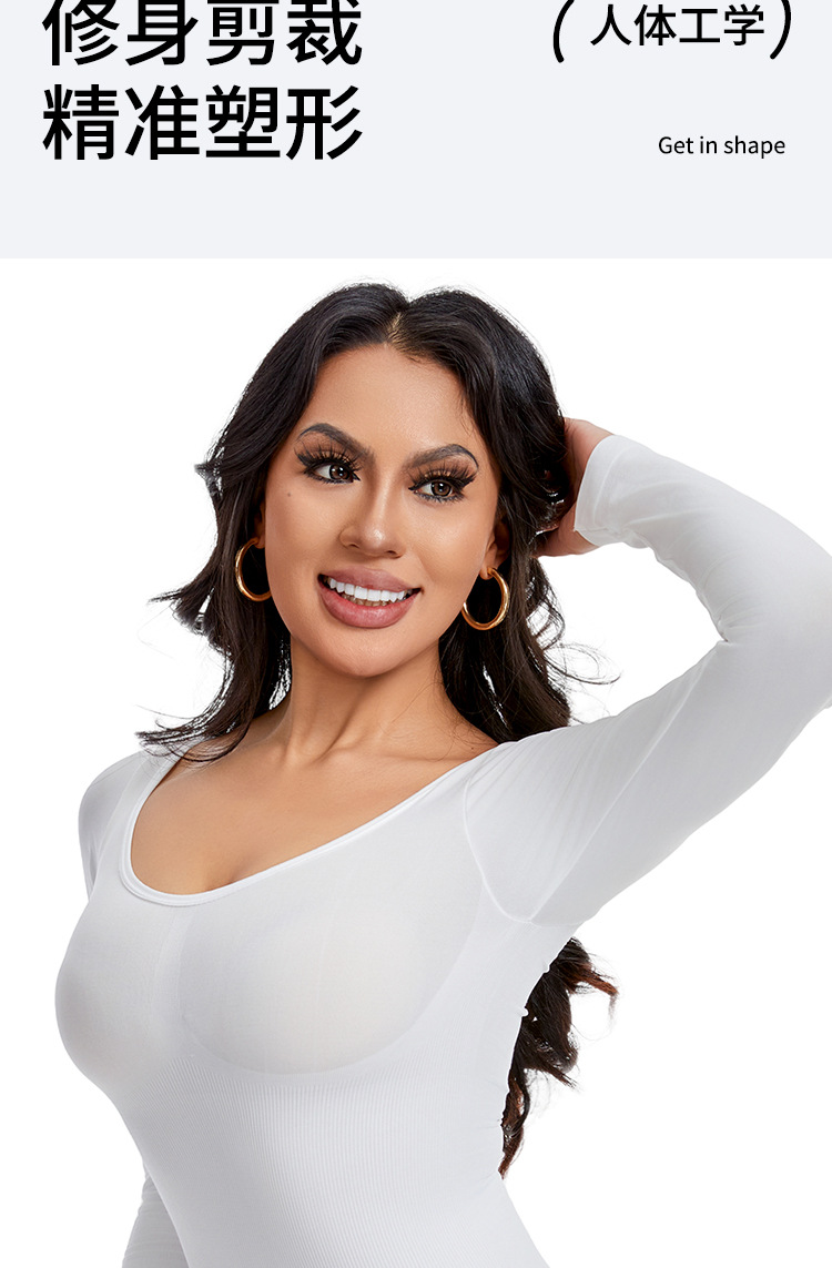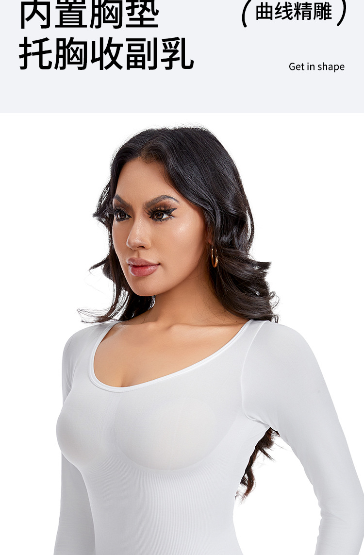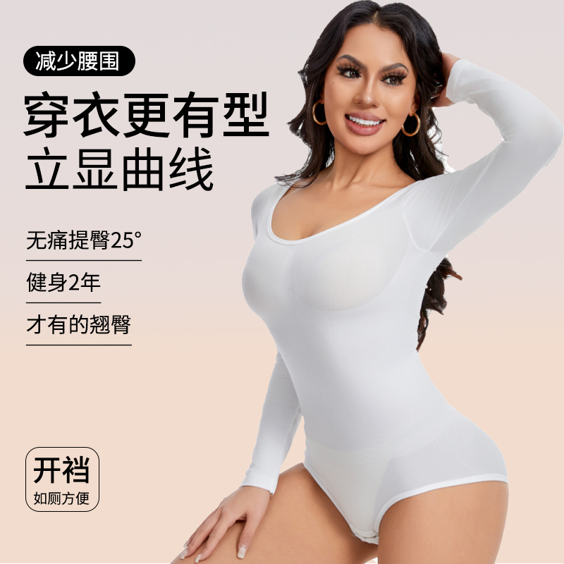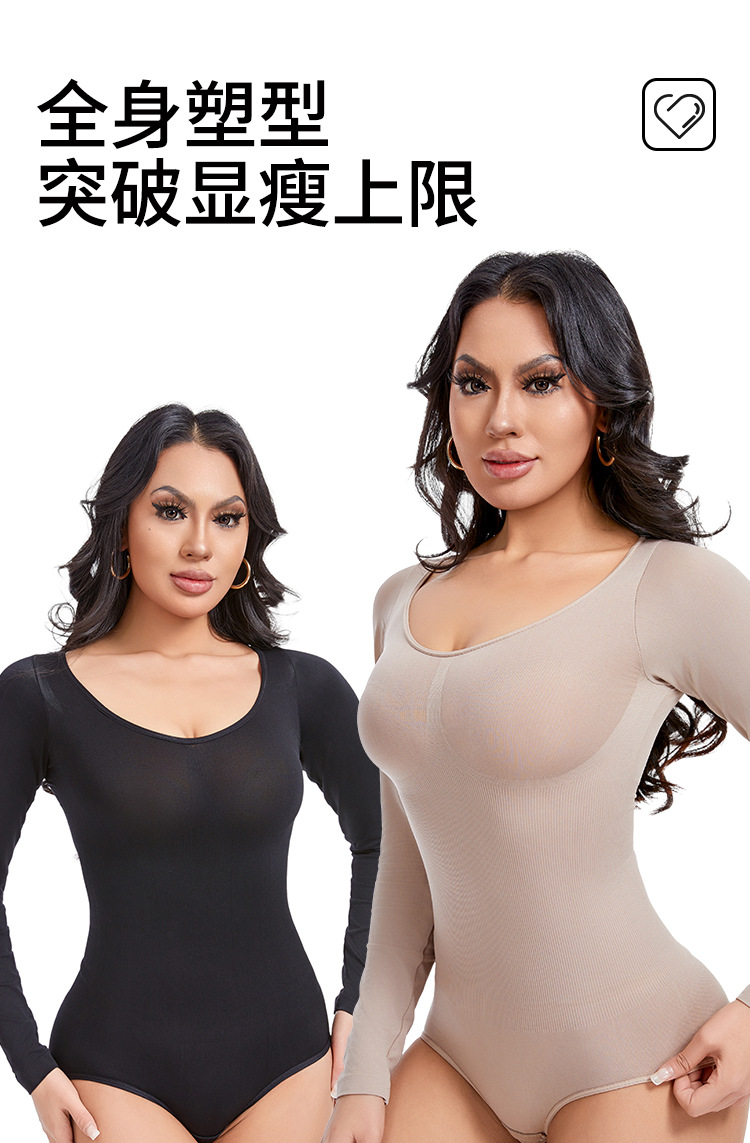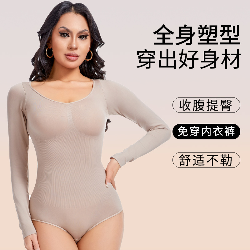 连体内衣收腹提臀塑型连体衣女紧身长袖束身瘦身衣美体塑身衣