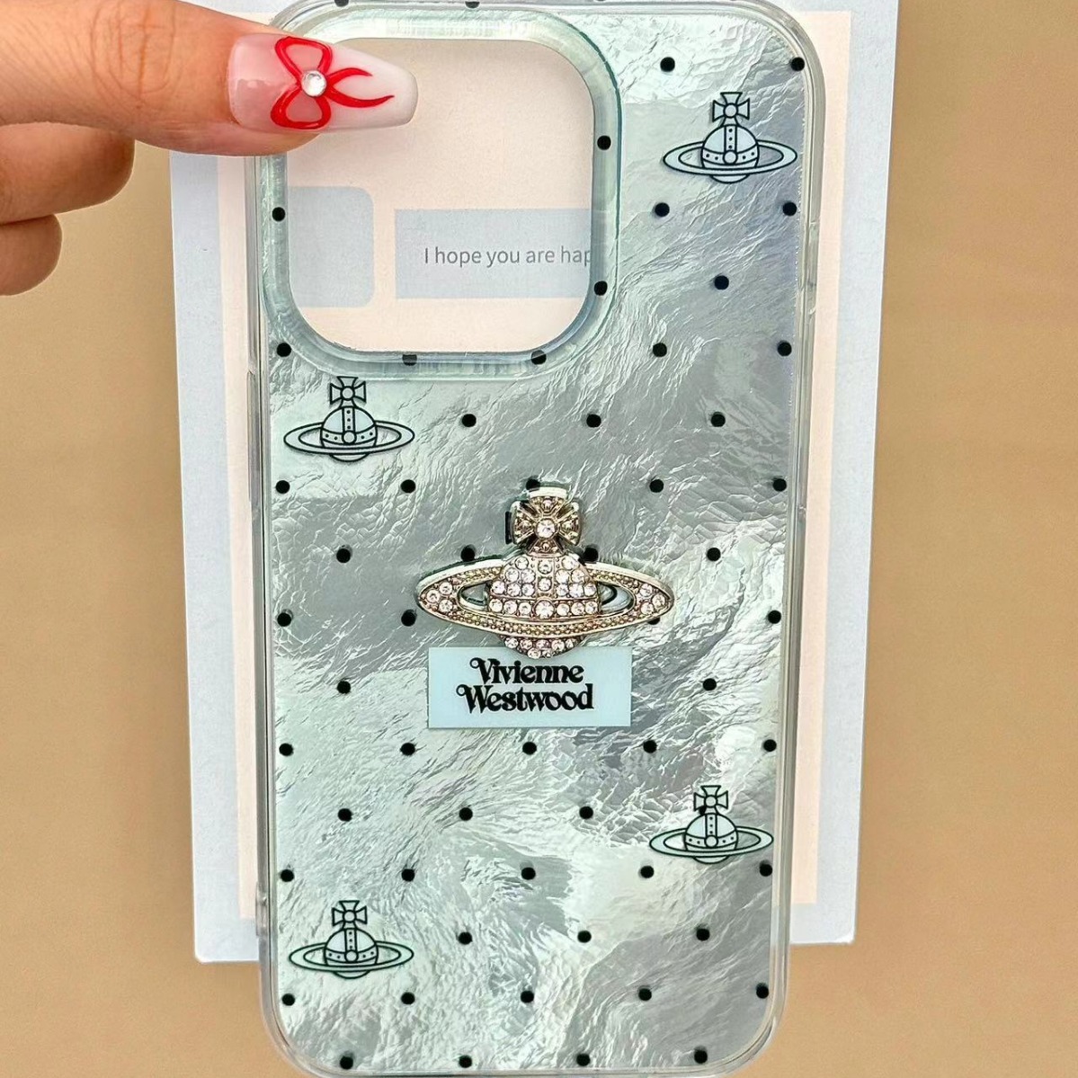 日韩薄荷绿波点星球立体钻适用iPhone15promax苹果14手机壳13新款