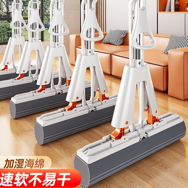 海绵拖把免手洗家用懒人拖把胶棉海绵对折挤水可伸缩不锈钢杆拖布
