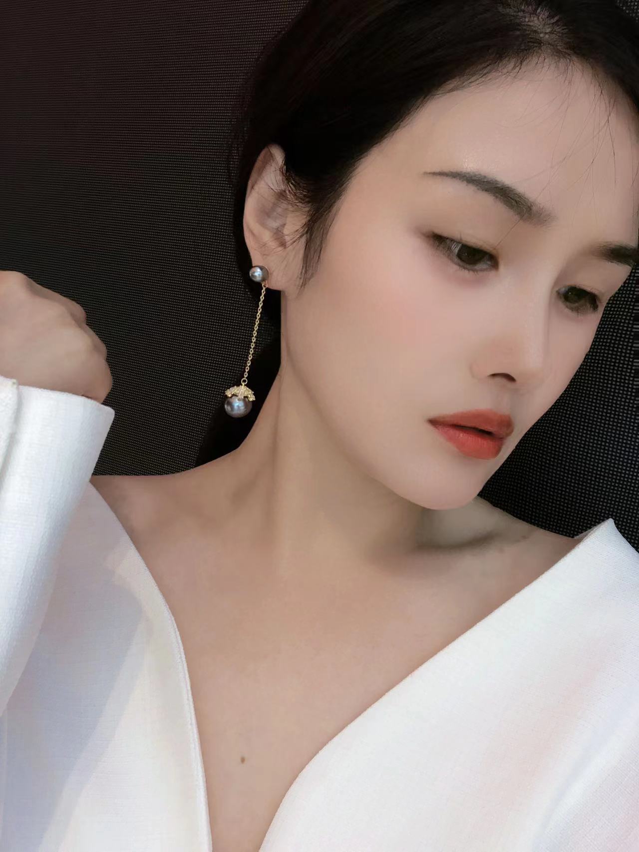 925韩版粉咖色珍珠耳环雪花长耳饰女气质批发高级感轻奢耳坠耳线