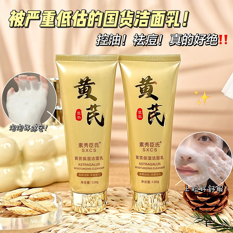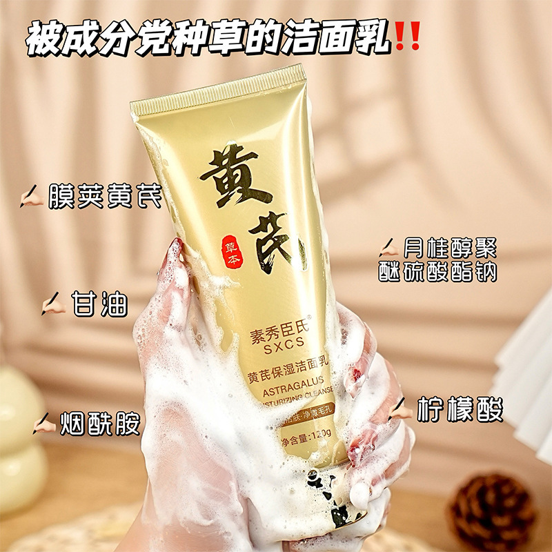 黄芪洁面乳提亮肤色深层清洁卸妆补水控油温和