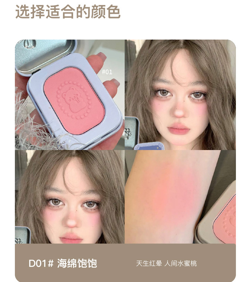 花星小熊腮红低饱和淡颜哑光雾面持妆显色自然修容胭脂