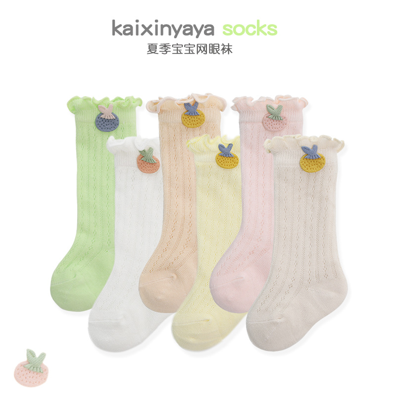 婴儿夏季袜子宝宝薄款0-3月婴儿袜网眼透气a类新生儿童防蚊中筒袜