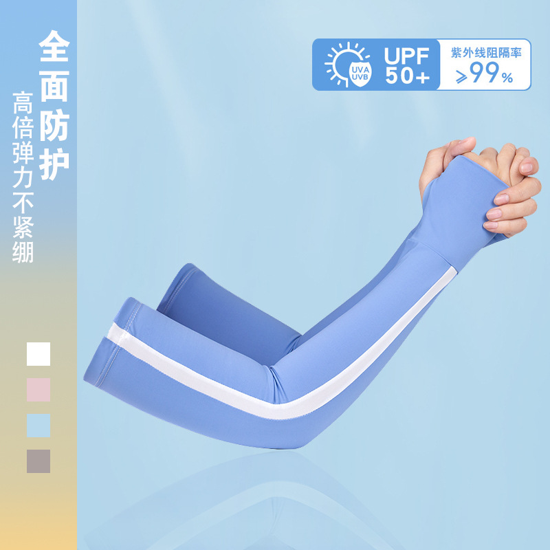 夏季防晒冰袖女撞色袖套防紫外线手袖凉感加长款护臂开车运动骑行