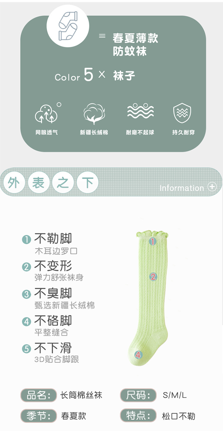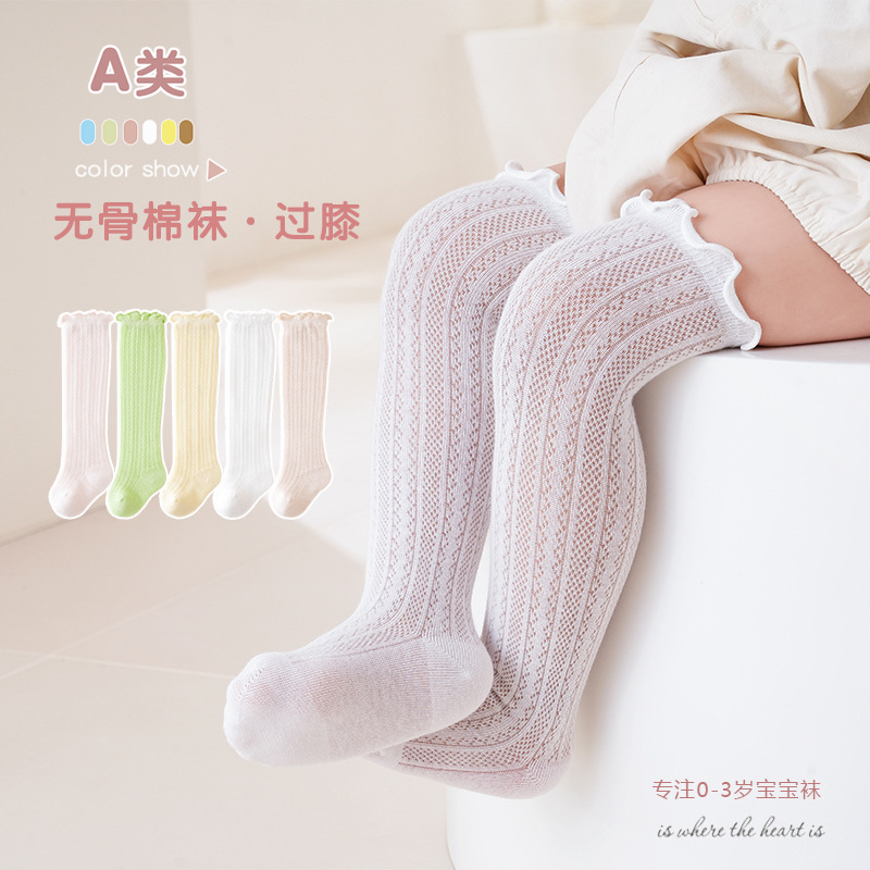 婴儿长筒袜夏季薄款无骨网眼棉袜过膝袜新生儿宝宝袜防蚊袜不勒腿