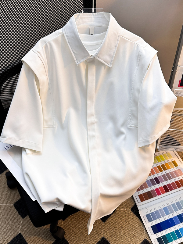 高级垂感冰丝短袖衬衫男士夏季薄款韩版潮流纯色免烫解构中袖衬衣