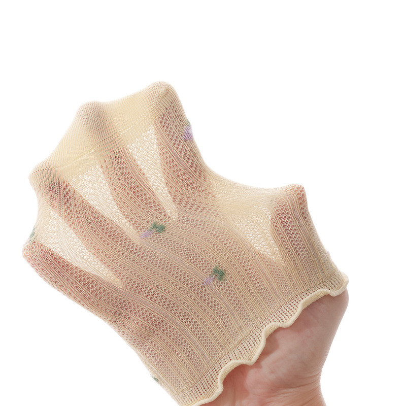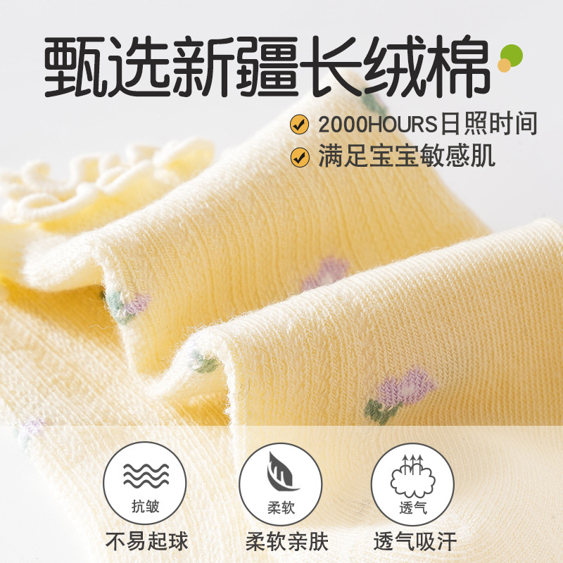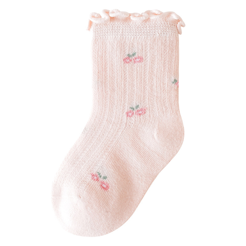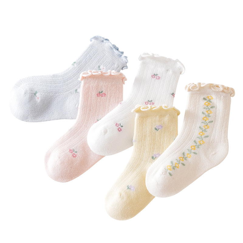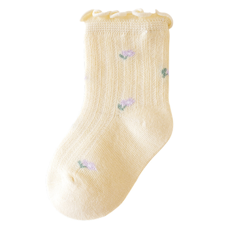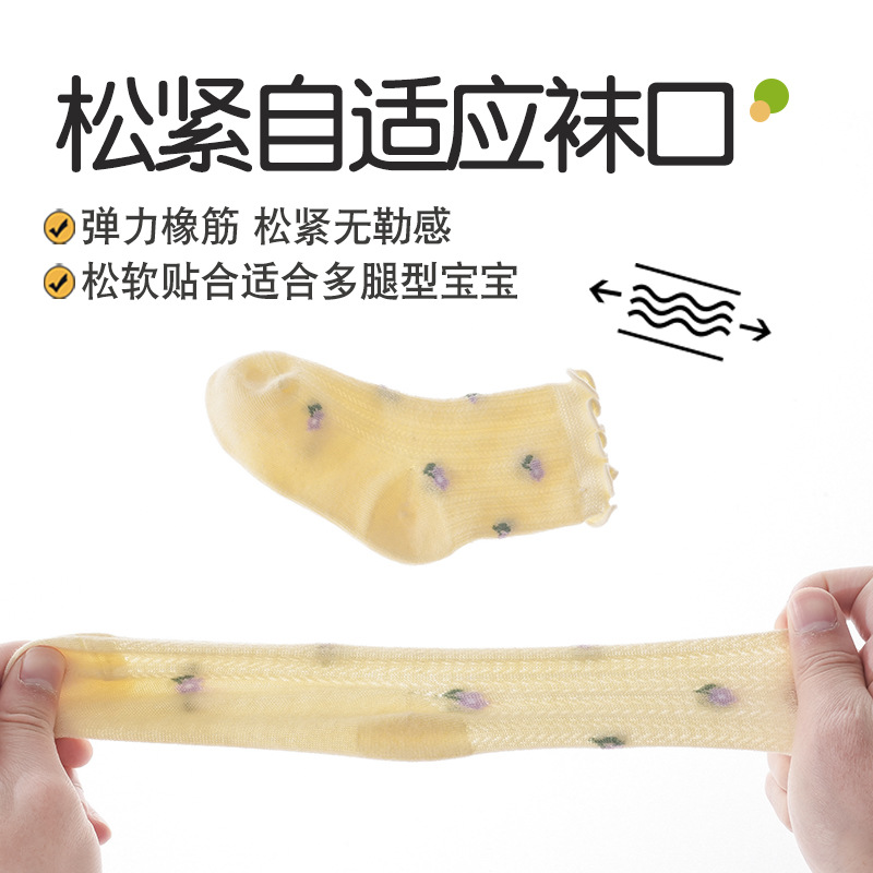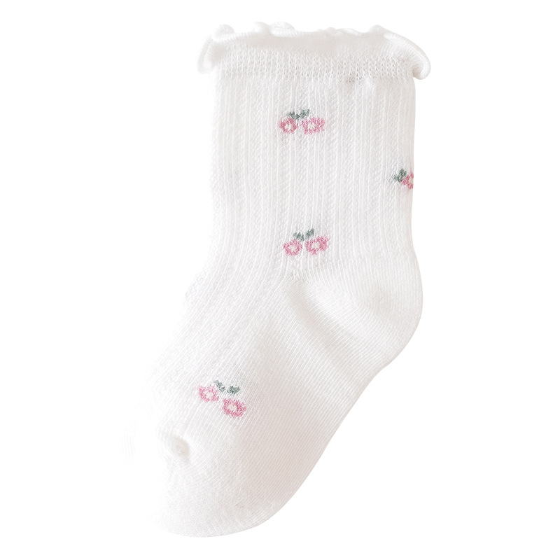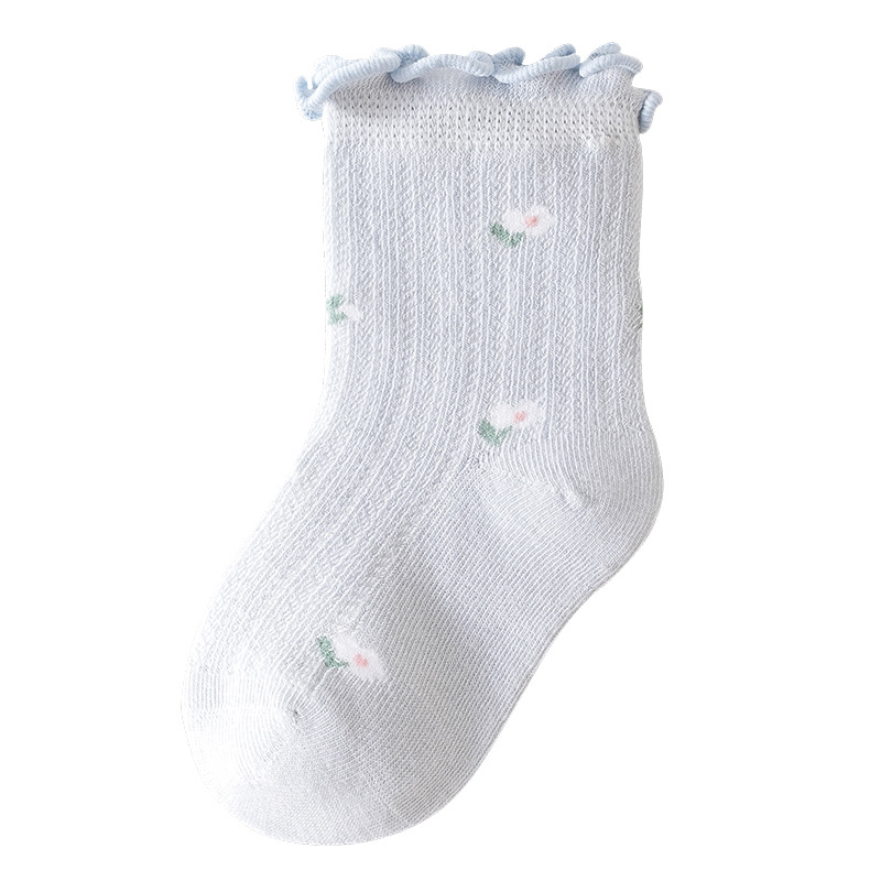 25婴儿网眼袜夏季薄款透气短袜木耳边网眼高弹不勒中筒袜复古碎花