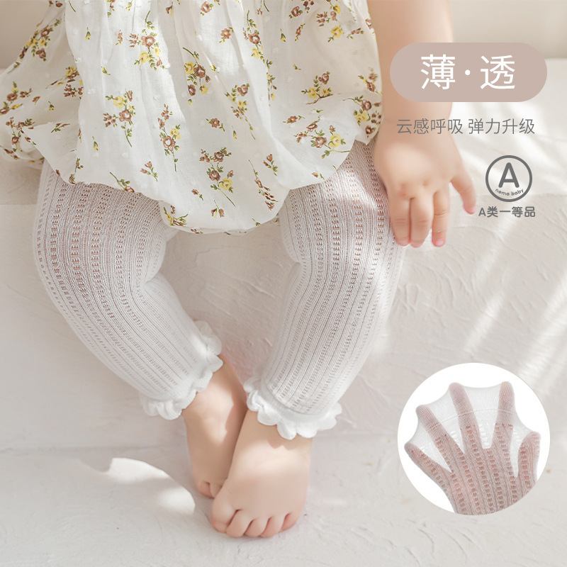 女童花边九分裤夏季超薄韩国公主洋气新生婴儿纯色女宝宝打底裤袜