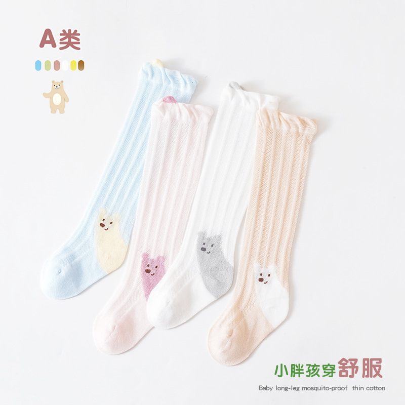 婴儿袜子夏季过膝长筒袜网眼袜薄款防蚊袜a类宝宝长袜新生儿