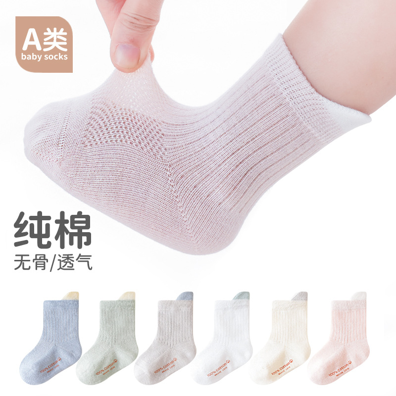 25婴儿袜子春夏季薄款a类网眼袜新生儿宝宝棉袜儿童男女童袜纯棉