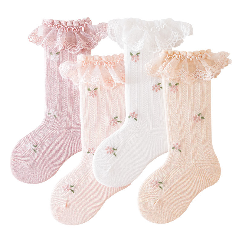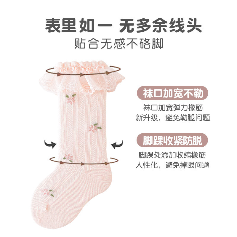 新品小碎花春夏宝宝袜薄款透气甜美花边婴儿袜子公主风童袜
