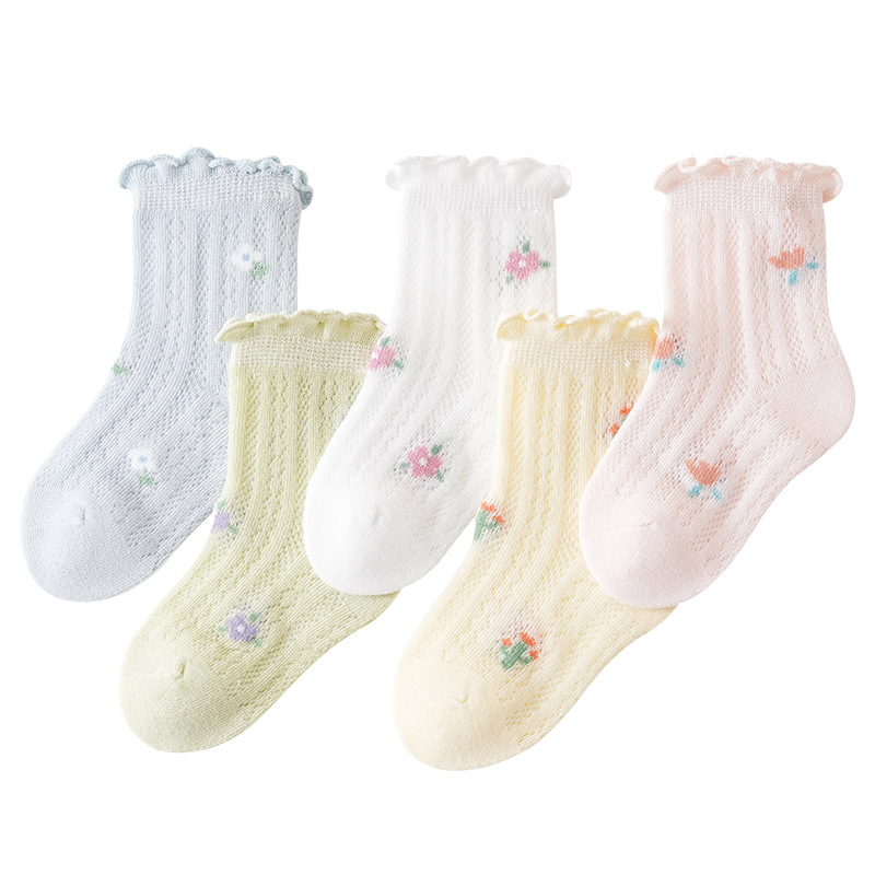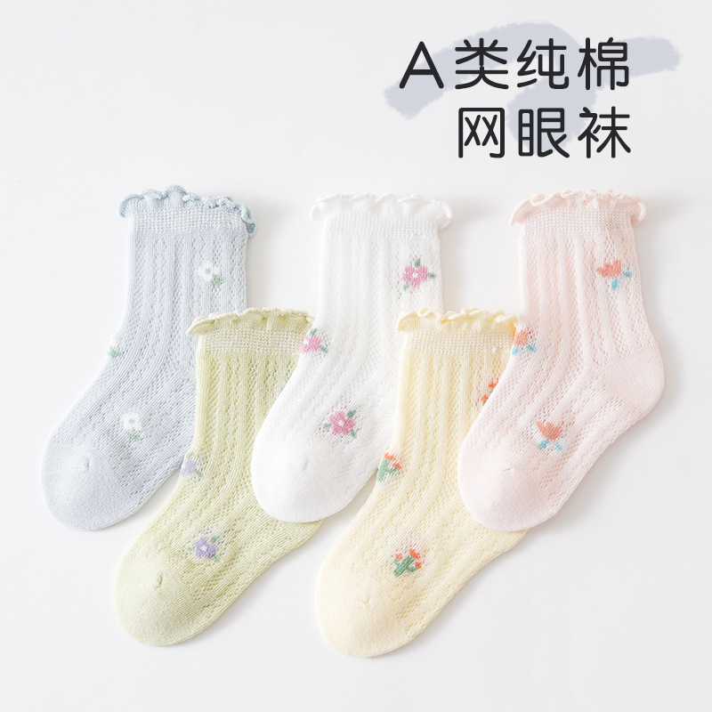 宝宝夏天袜子儿童薄款花边公主风婴幼儿网眼透气a类婴儿袜子
