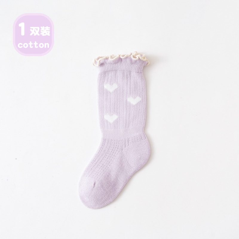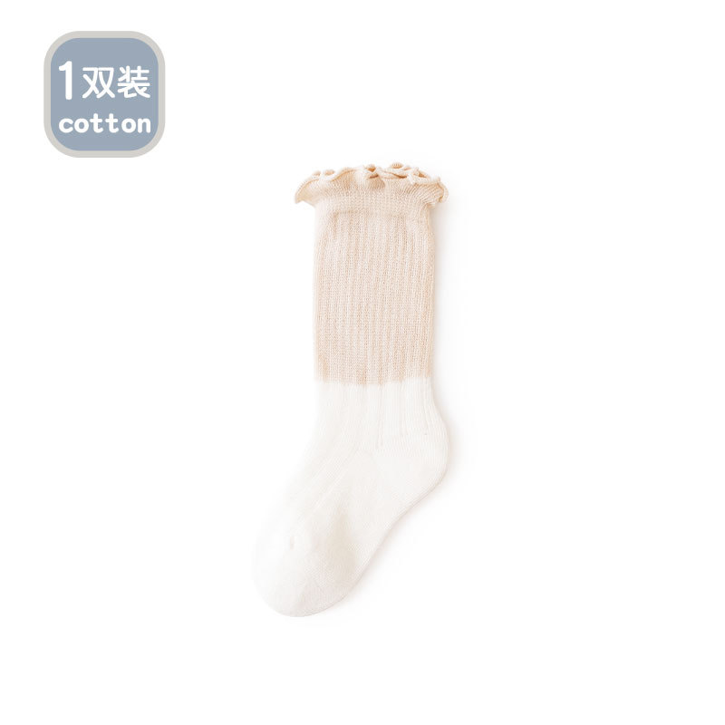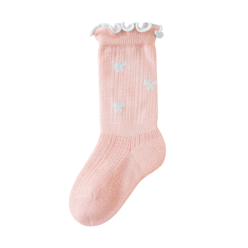 春夏新品薄款宝宝中筒袜网眼可爱木耳花边婴幼儿无骨松口袜