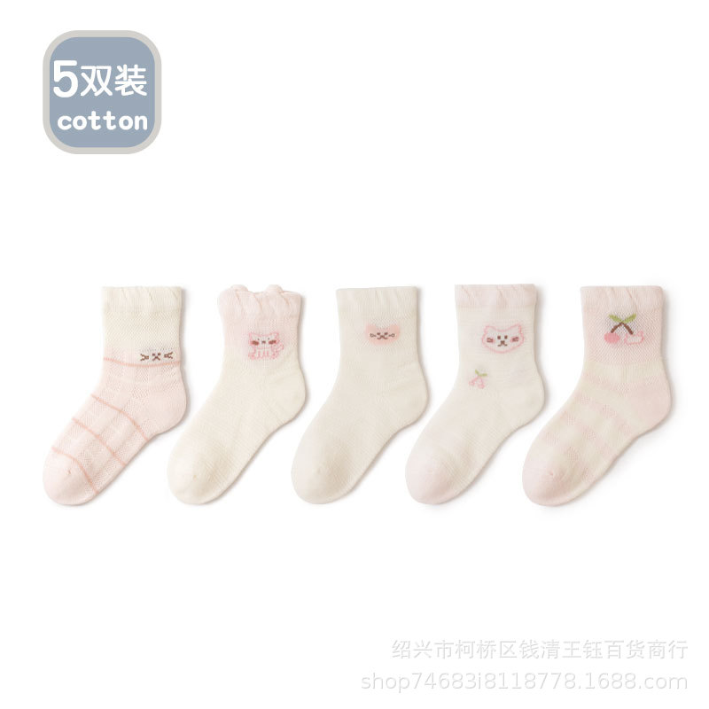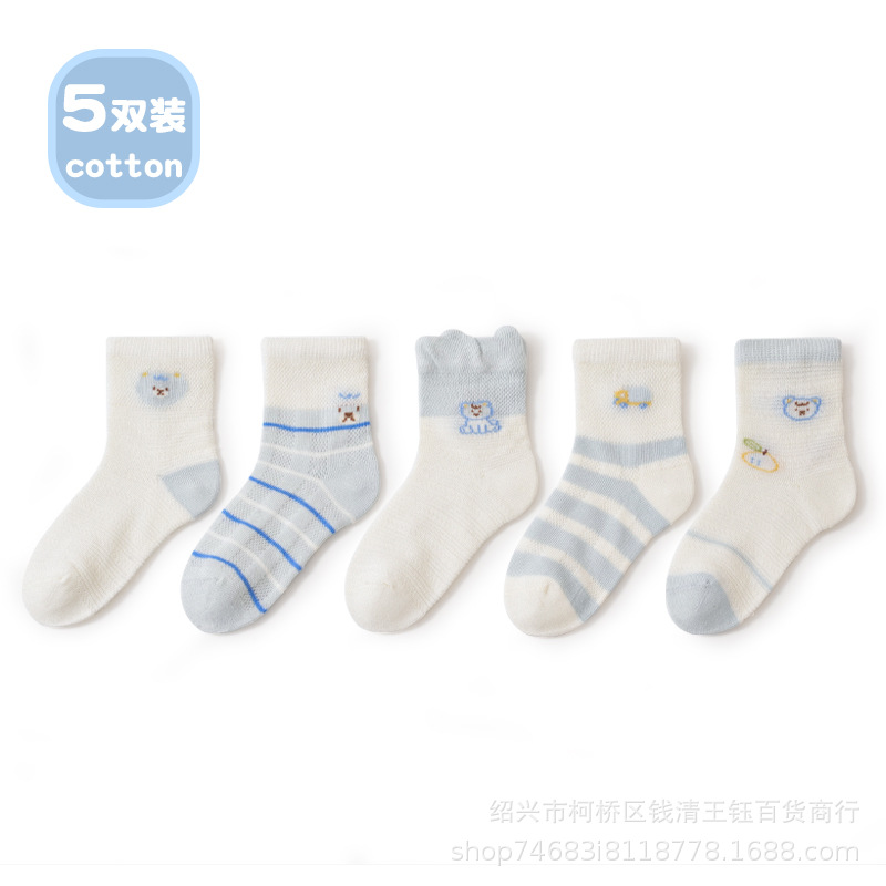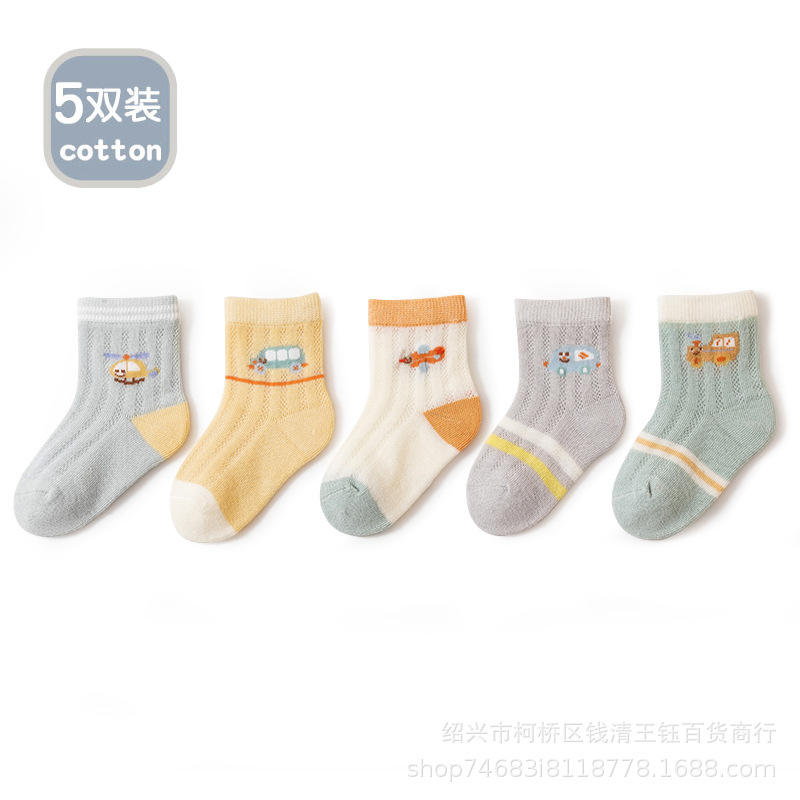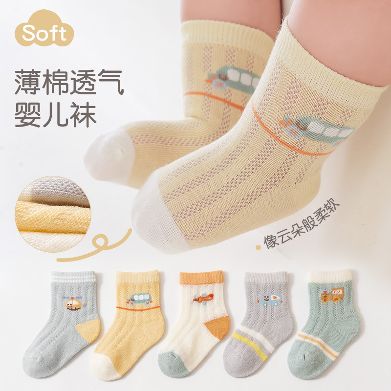 春夏新款薄款新生婴儿棉袜卡通小车透气网眼宝宝中筒袜舒适不闷热