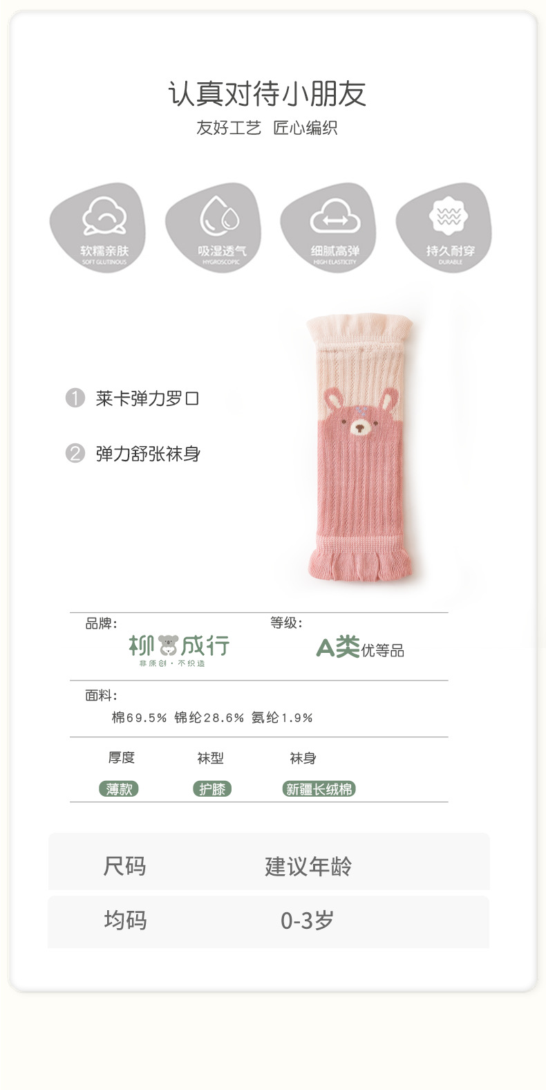 春夏新品宝宝护膝袜薄款卡通可爱宝宝爬行袜弹力不勒透气不闷热