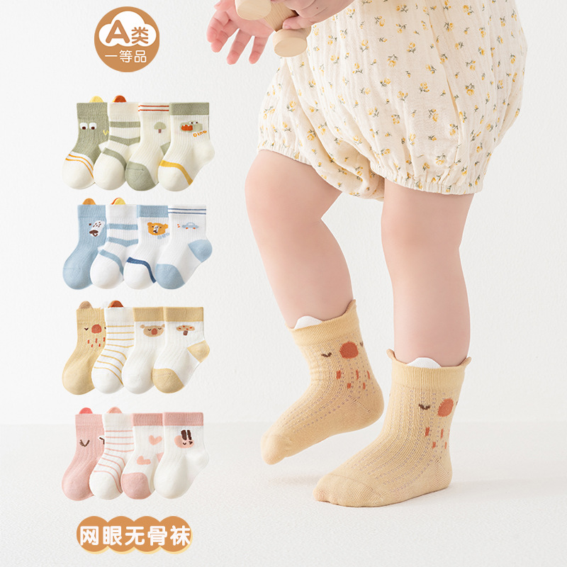 春夏季薄款宝宝中筒袜网眼袜子儿童棉袜婴儿无骨松口卡通男女童袜