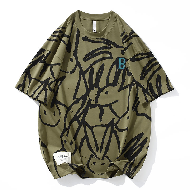 满身兔港风扩版学生落肩袖圆领短袖夏季新款青少年短袖T恤潮