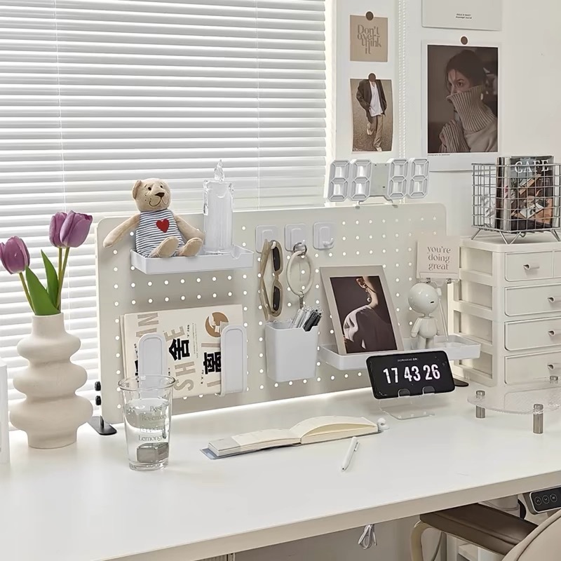 桌面洞洞板置物架免打孔立式学生书桌电脑桌上收纳整理架子展示架