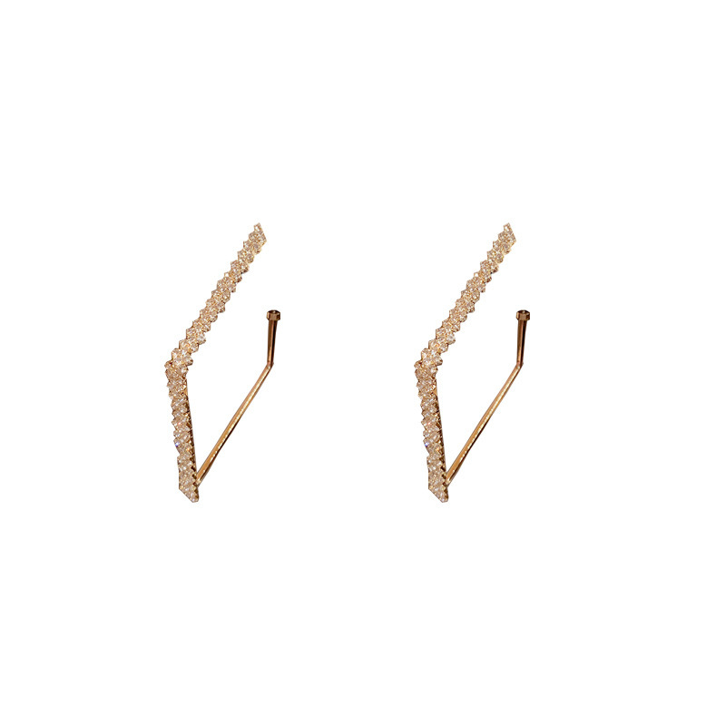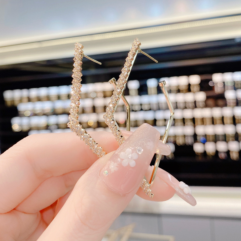 s925银针时尚个性夸张满钻菱形几何方块耳圈冷淡风高级感耳环耳饰
