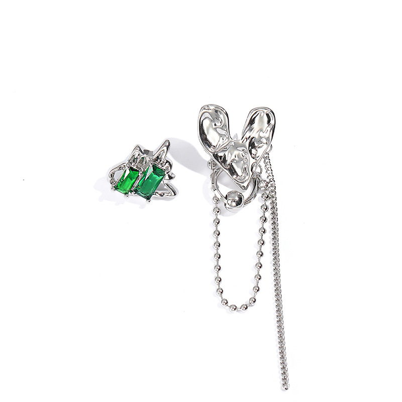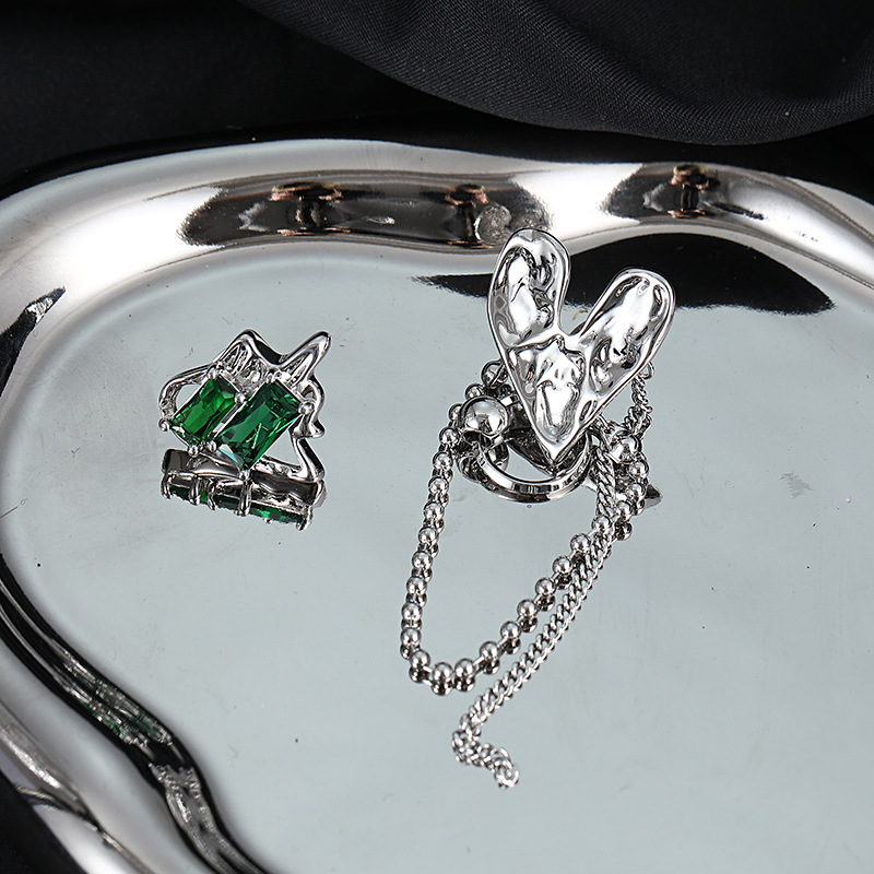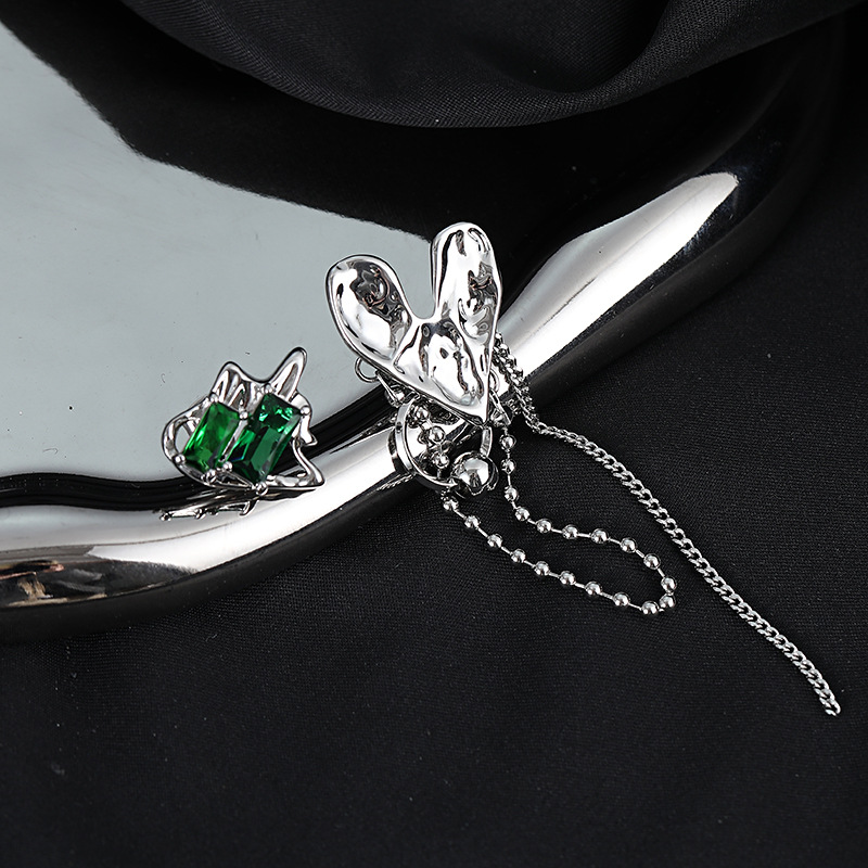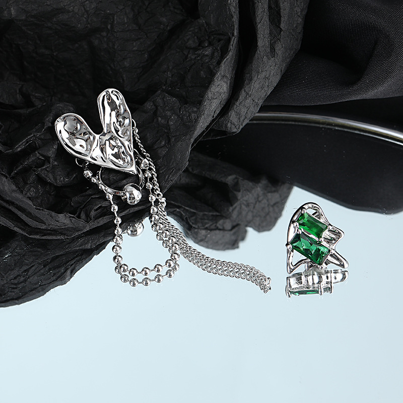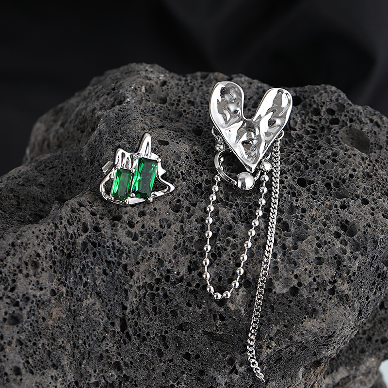 爱心耳环女ins冷淡风甜酷时尚链条耳饰不对称韩国小众设计感耳钉