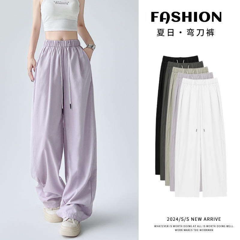 速干香蕉弯刀裤女夏季薄款垂感宽松纸片裤休闲冰丝褶皱山本阔腿裤