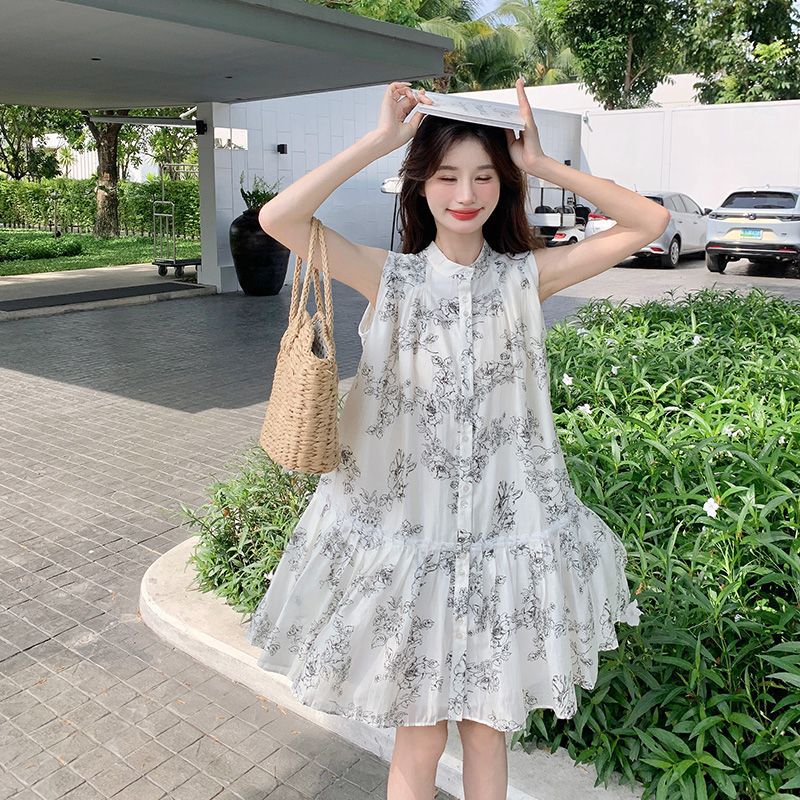 水墨画国风新中式连衣裙女夏新款小个子超仙a字裙碎花娃娃裙