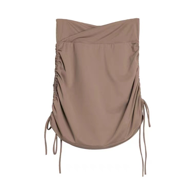 春夏短裙松紧弹力半身裙高腰女黑裙显瘦口袋大摆裙跳舞百褶裙跨境