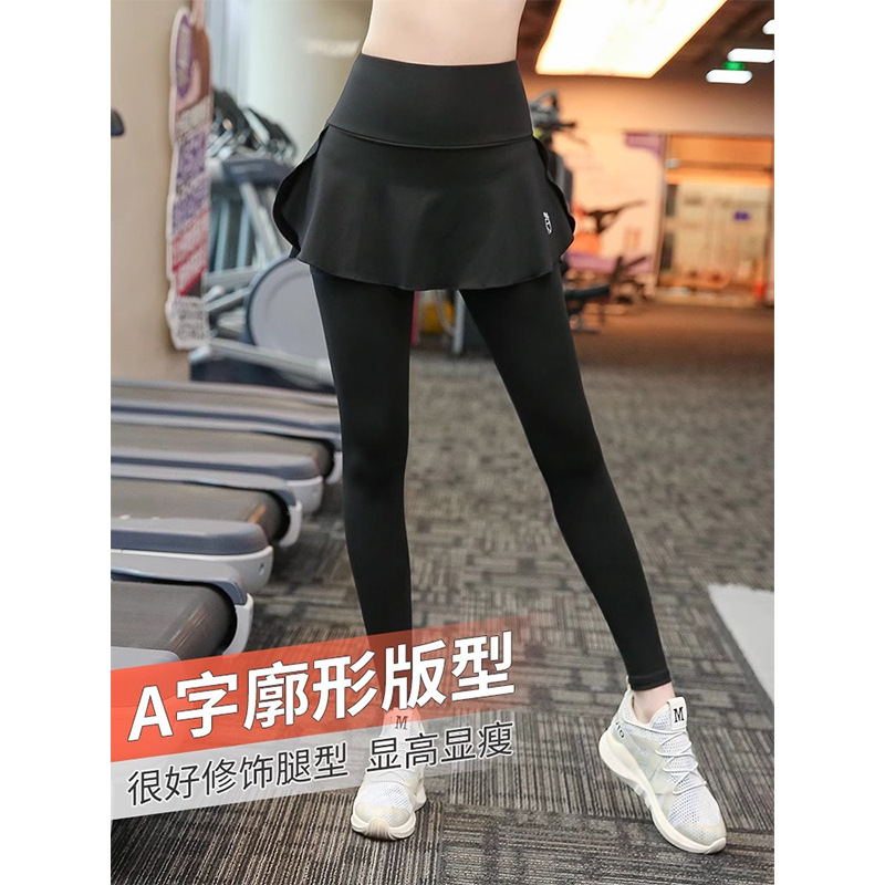 大码瑜伽裤女假两件速干春夏季健身长裤跑步显瘦弹力宽松运动裤