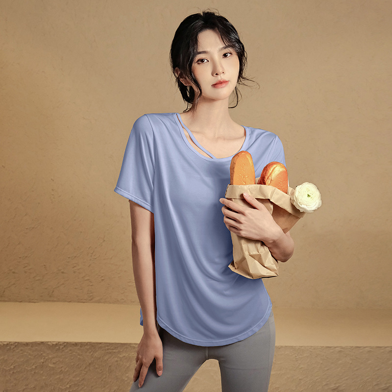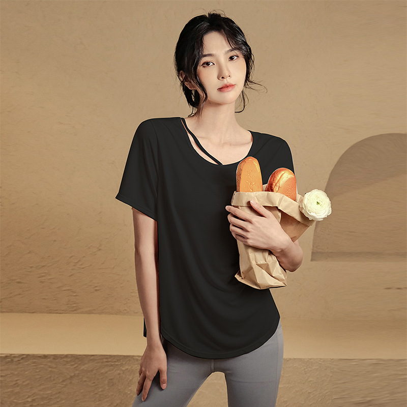 夏薄款瑜伽服显瘦速干上衣户外晨跑宽松外穿遮臀T恤女训练健身服