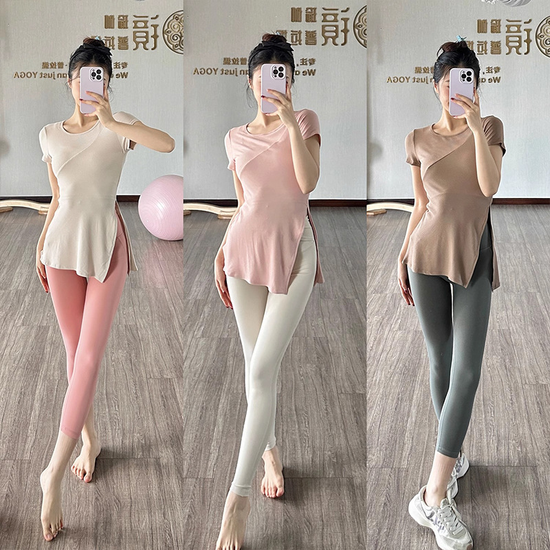 薄款瑜伽服显瘦速干上衣户外晨跑宽松遮臀短袖罩衫女T恤健身训练