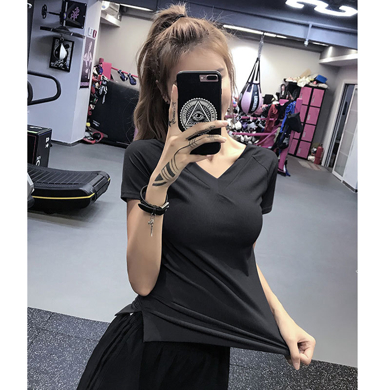 夏季速干透气薄款健身训练服修身V领美背瑜伽运动短袖T恤女上衣潮