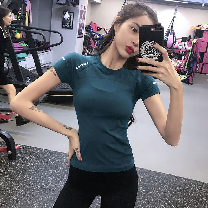 弹力健身防震聚拢普拉提运动T恤女夏季薄款晨跑训练瑜伽速干上衣