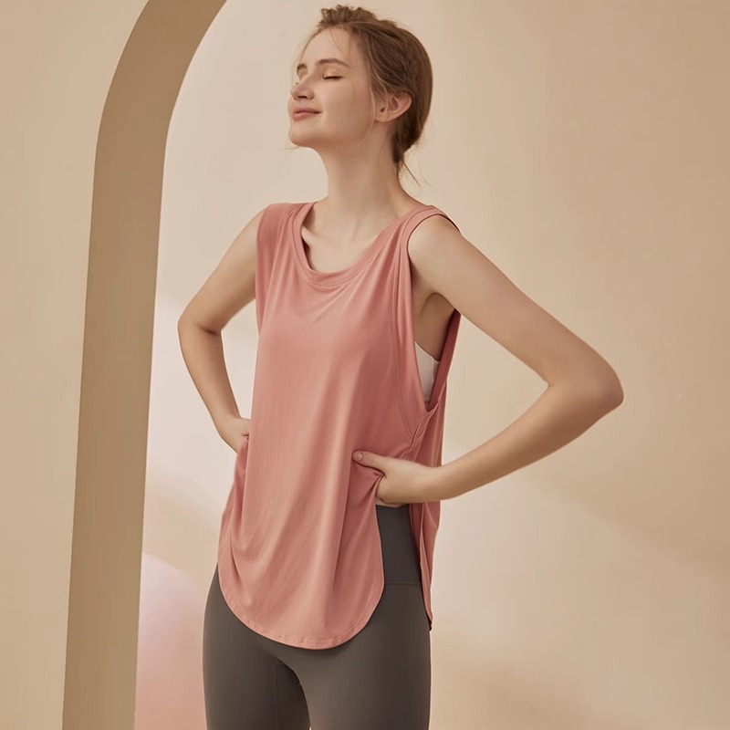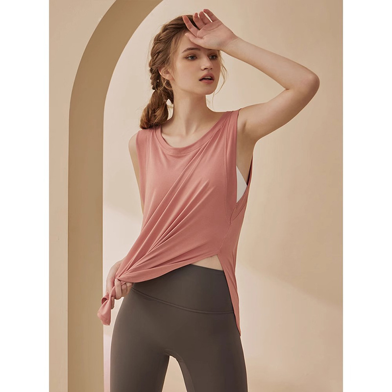 健身服女夏季速干无袖T恤跑步训练瑜伽上衣宽松显瘦运动透气罩衫