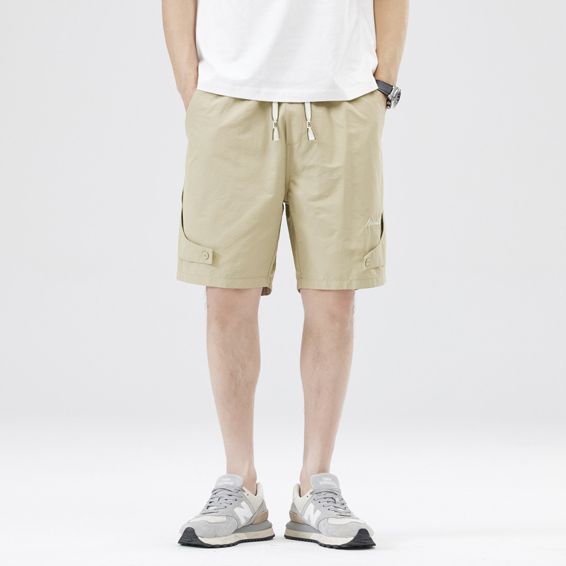 夏季新款男美式休闲重磅洗水户外复古风五分裤男卡其色黑色棉