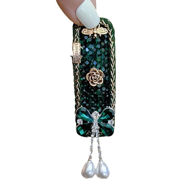 韩国东大门高端闪钻绿色发夹女款重工流苏珍珠水晶掰掰夹刘海夹女