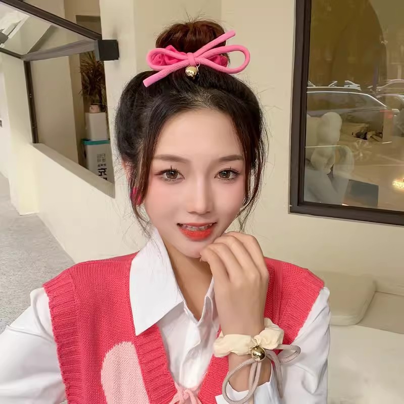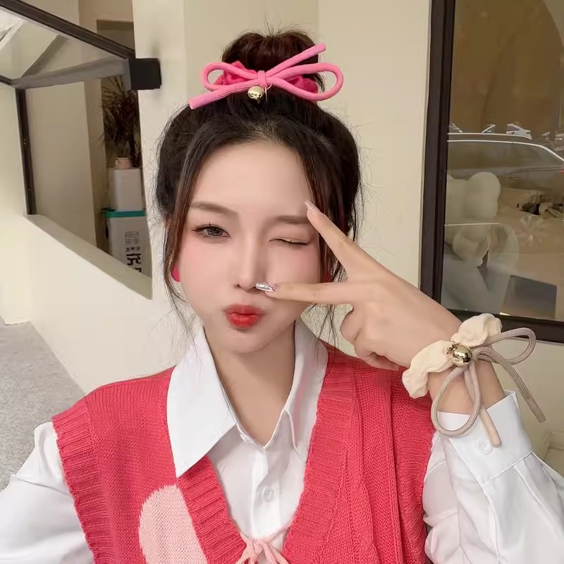 多巴胺粉色蝴蝶结针织大肠圈发圈头绳女头饰发绳女新款少女