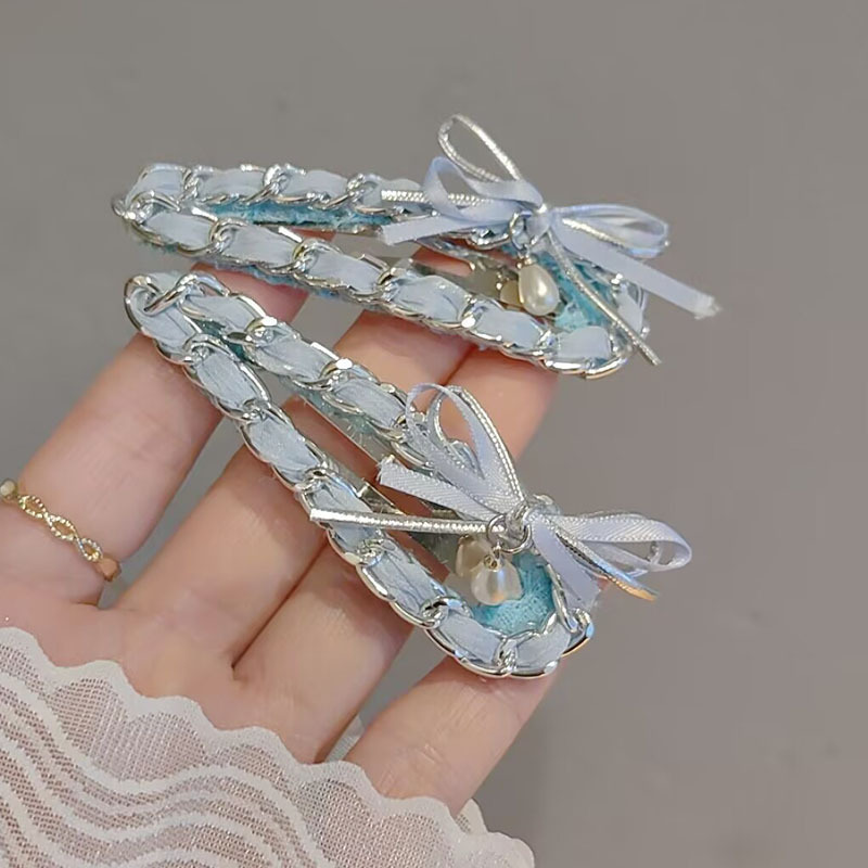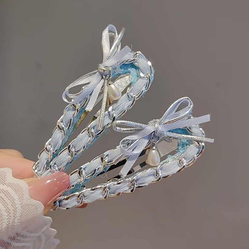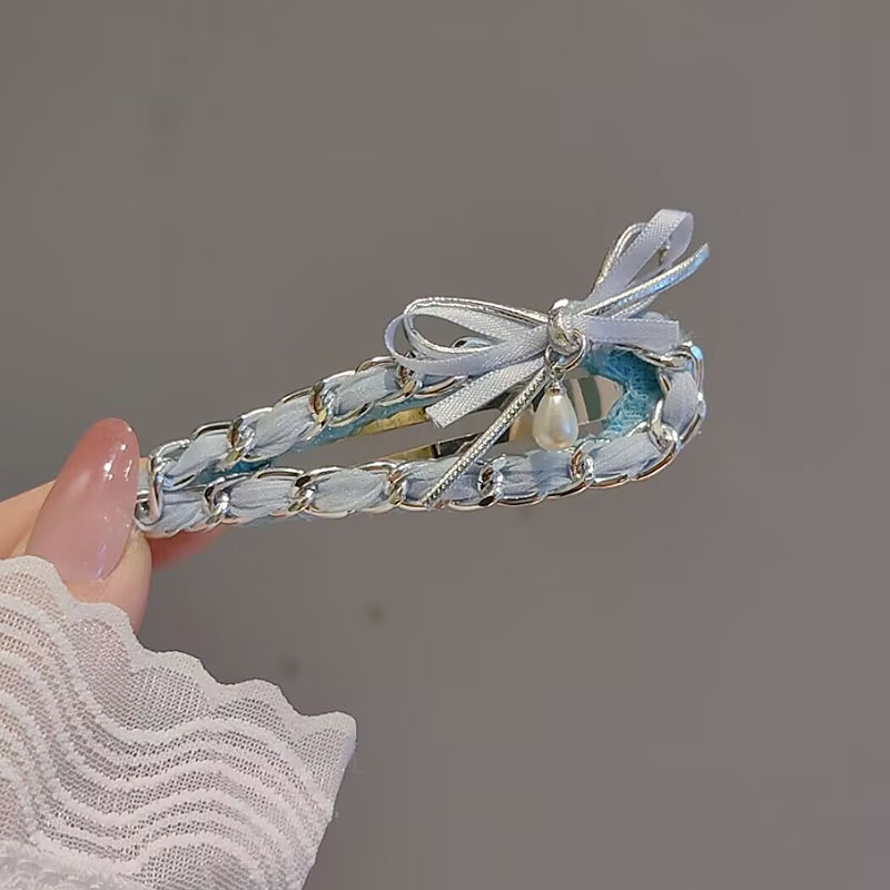 韩国东大门新款珍珠蝴蝶结发夹一字夹刘海夹侧边夹后脑勺碎发夹子
