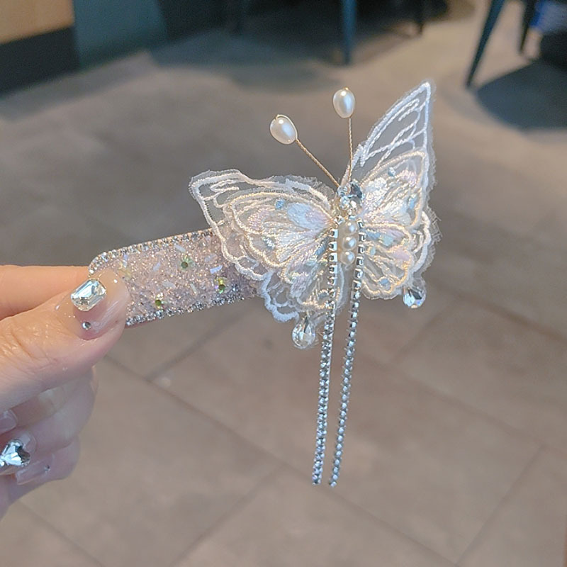 蕾丝刺绣蝴蝶掰掰夹小众发夹头饰发卡女时尚甜美刘海侧边碎发夹子