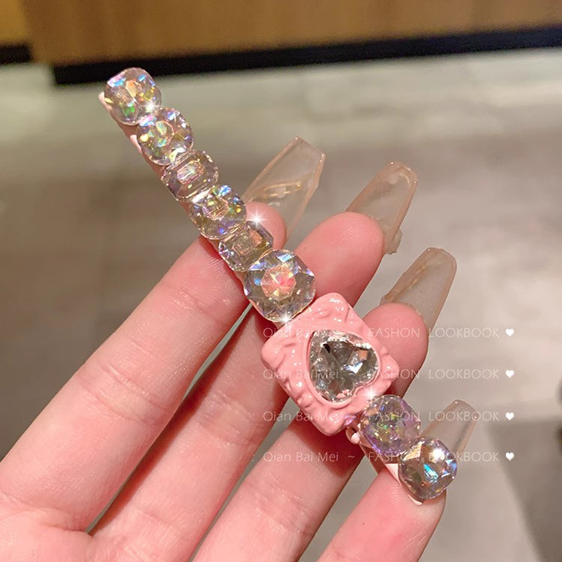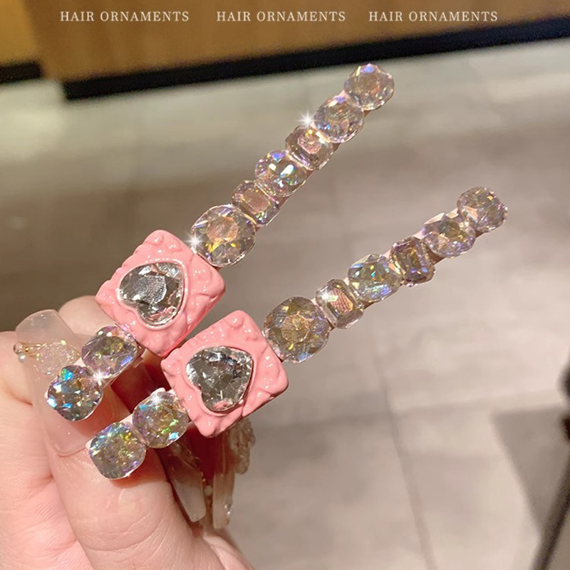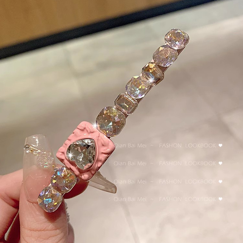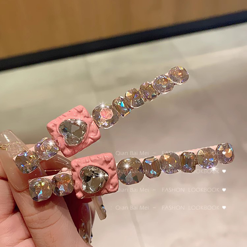 高级感超闪水钻发夹精致爱心气质鸭嘴夹侧边刘海夹一字夹粉色发饰