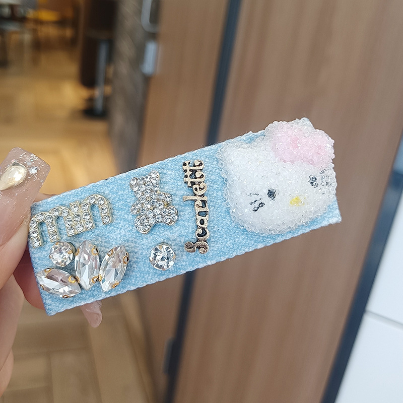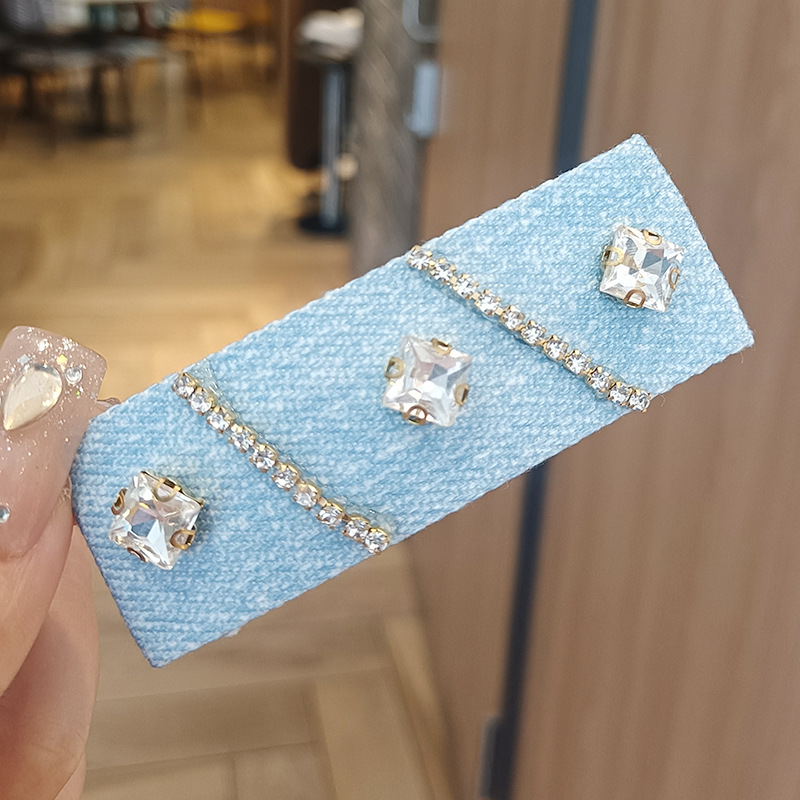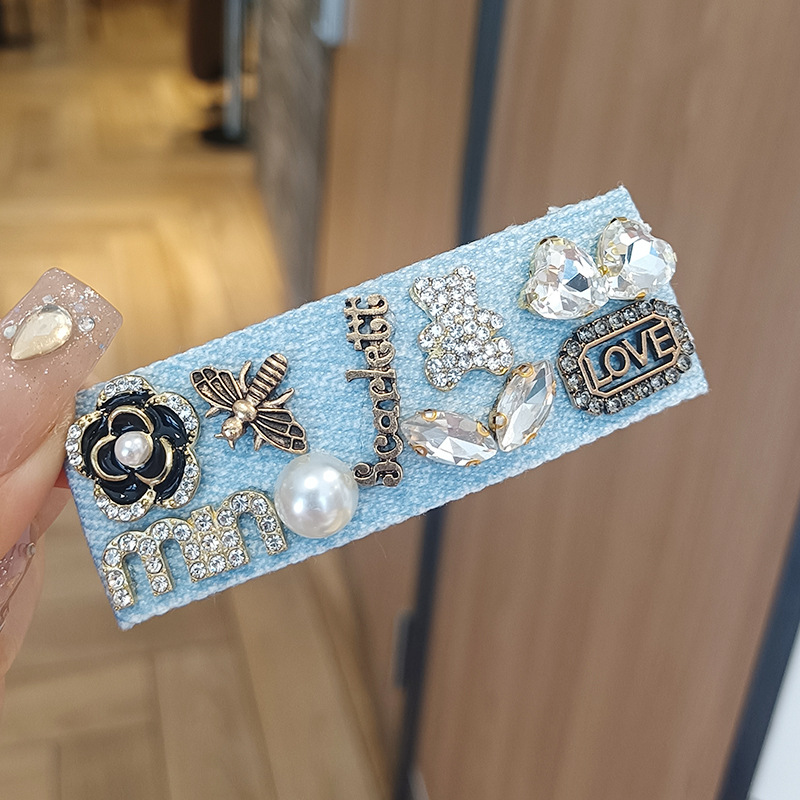 牛仔蓝发夹新款韩版发夹小香风简约珍珠水钻一字刘海碎发夹子