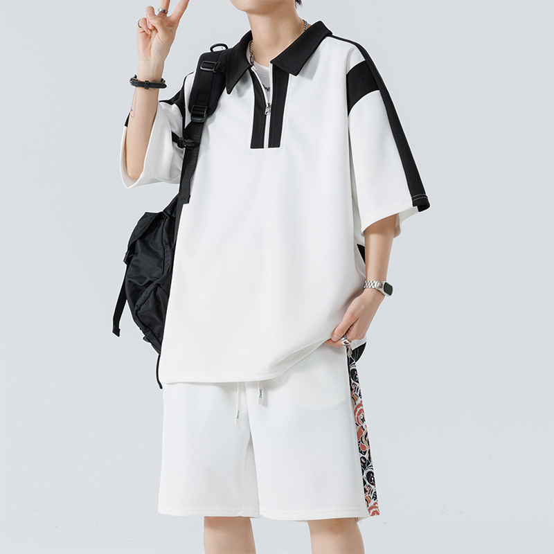 优质夏季新款港风套装两件套短裤休闲运动宽松休闲短裤美式套装男