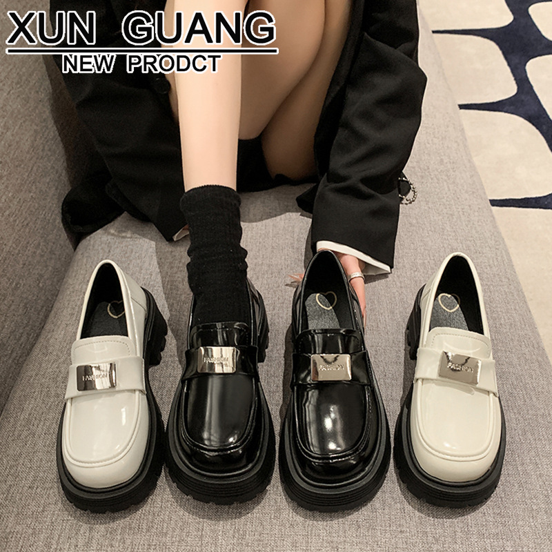 松糕厚底增高小皮鞋女春季新款百搭英伦风日系一脚蹬乐福单鞋