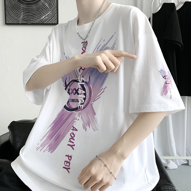 新款男士涂鸦印花短袖T恤男潮牌ins宽松圆领谢谢情侣t恤上衣