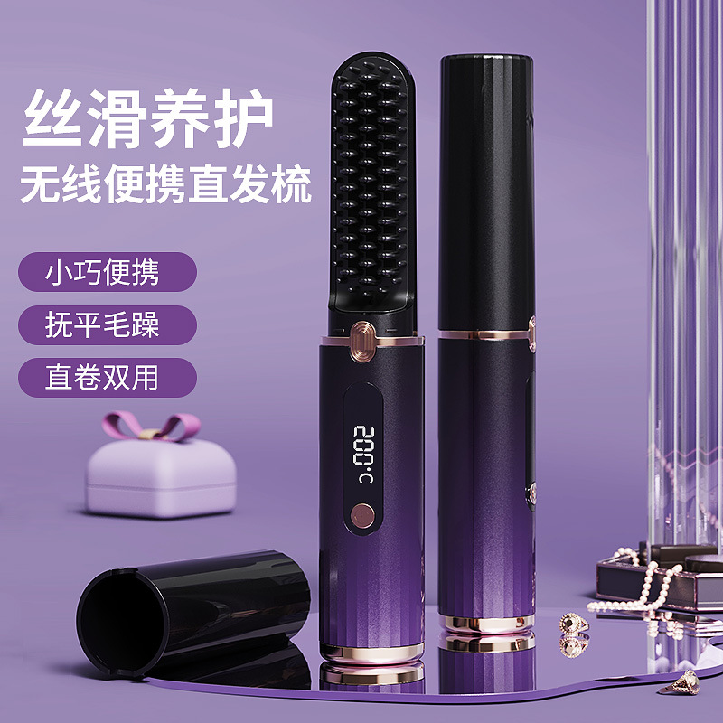 跨境新款无线充电直发梳便携迷你拉直板直发器负离子不伤发电梳子