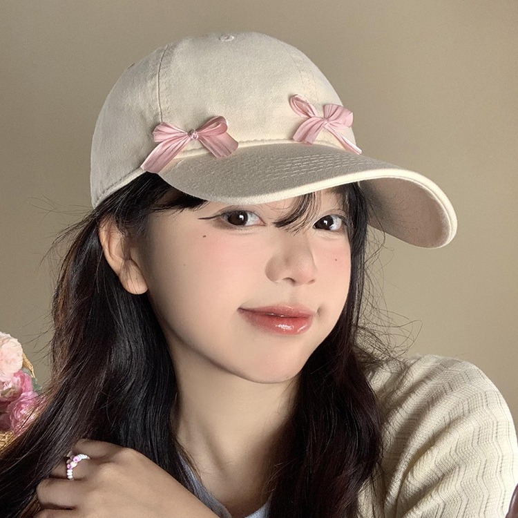 蝴蝶结棒球帽女新款大头围显脸小鸭舌帽百搭宽帽檐软顶帽子潮